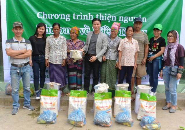 | Anh Lê Thành Trung, Chủ tịch Câu lạc bộ Sẻ chia sự sống Hà Nội, trao quà cho bà con dân tộc ở bản Sắt. |
