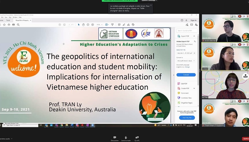 Với tham luận “Các vấn đề địa chính trị đối với giáo dục quốc tế và du học sinh: tác động đối với việc quốc tế hóa các trường đại học ở Việt Nam”, bà Trần Ly, Giảng viên Đại học Deakin của Australia so sánh các số liệu thống kê cho thấy nếu như năm 2016, Việt Nam xếp thứ 8 trong số các lựa chọn đào tạo ngắn hạn ở nước ngoài của các sinh viên Australia thì trong bối cảnh đại dịch COVID, nay Việt Nam đang được đẩy lên xếp hạng thứ tư.