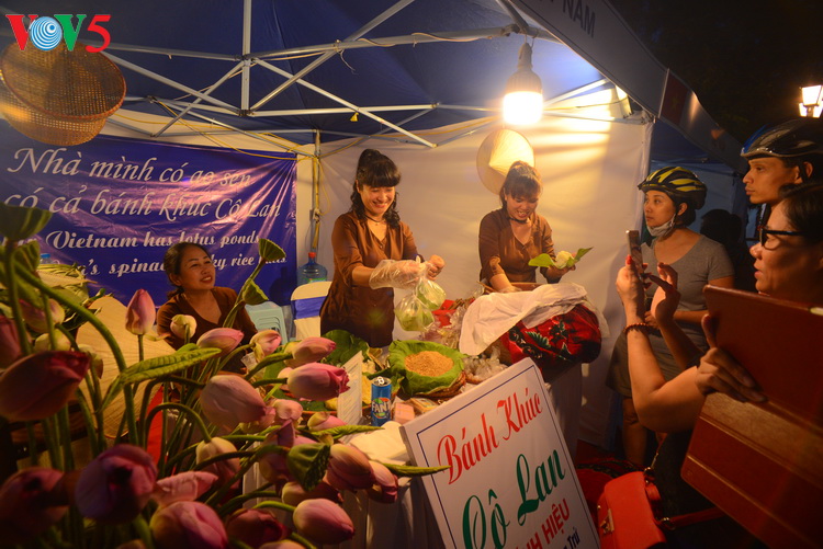 Trong 50 gian hàng tham gia chương trình có 25 gian hàng ẩm thực của Hà Nội, giới thiệu các món ăn truyền thống như: Bánh khúc, trà Sen Hồ Tây, bún ốc…