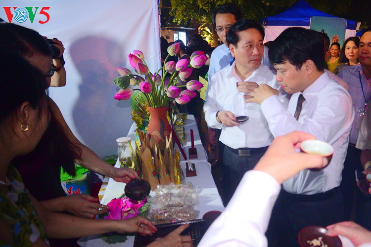 Phó Chủ tịch UBND thành phố Hà Nội Ngô Văn Quý cùng đoàn đại biểu thưởng thức hương vị đặc sản tràsen Hồ Tây