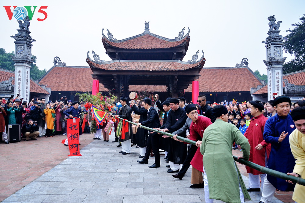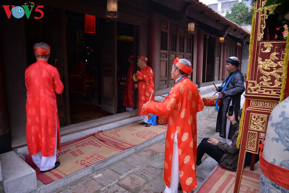 | Chương trình được diễn ra theo đúng những lễ nghi trong Tết Việt truyền thống, bao gồm phần Lễ và phần hội, tất cả đều diễn ra trong khuôn viên đình làng Lệ Mật. (trong ảnh là Lễ yết Thành hoàng) |