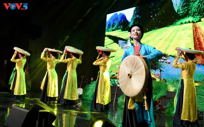 Tại buổi tiệc, các khách mời được thưởng thức chương trình nghệ thuật đặc sắc với chủ đề “Việt Nam – Quê hương tôi” do các nghệ sỹ Nhà hát Nhạc Vũ Kịch Việt Nam và Học viện Âm nhạc quốc gia Việt Nam biểu diễn với các tiết mục đặc sắc, sinh động, đậm đà bản sắc dân tộc và mang tính nghệ thuật cao.