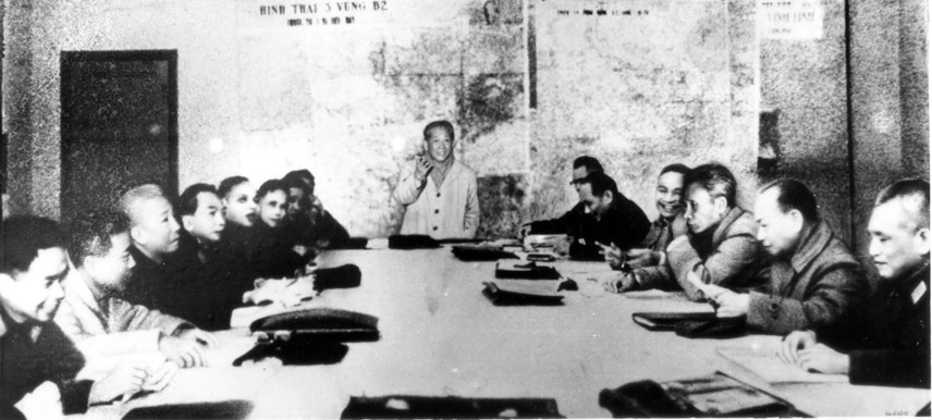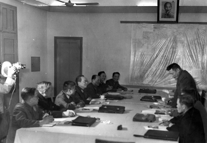 Trung ương Đảng và Chủ tịch Hồ Chí Minh họp quyết định mở mặt trận có tính chiến lược: “Tiêu diệt tập đoàn quân viễn chinh tinh nhuệ Pháp tai Điện Biên Phủ”, tháng 12/1953. Nguồn: TTXVN.