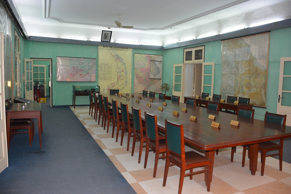 Ảnh: Phòng họp Bộ Chính trị và Quân ủy Trung ương (1968 - 1980) tại di tích Nhà D67, khu trung tâm Hoàng thành Thăng Long - Hà Nội. Nguồn: daidoanket.vn