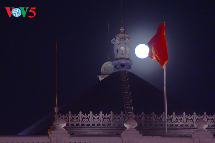| Khu vực quảng trường Cách mạng Tháng Tám trước cổng Nhà Hát Lớn được nhiều người lựa chọn là địa điểm ngắm trăng và chụp ảnh, vì tại đây có thể chụp được khoảnh khắc nguyệt thực xảy ra phía trên những nét kiến trúc cổ điển của Nhà Hát Lớn |