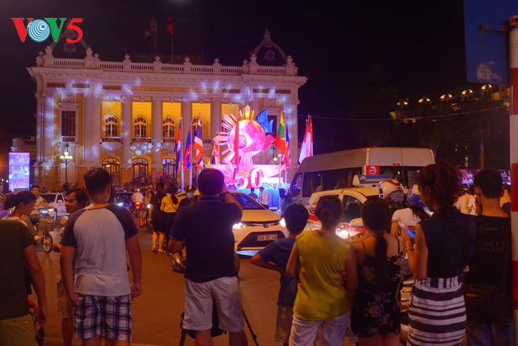 | Ngày 8/8 cũng đồng thời là ngày kỷ niệm 50 năm thành lập ASEAN, và quảng trường cũng là vị trí để trình diễn chiếu sáng nghệ thuật kỷ niệm ASEAN của thủ đô Hà Nội |