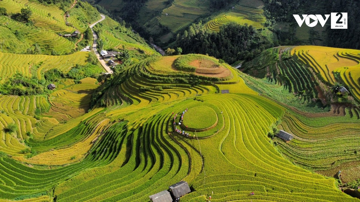 Tháng 9, tiết trời thu vùng cao se lạnh cũng là thời điểm lúa chín rộ trên những triền ruộng bậc thang hùng vỹ ở Mù Cang Chải, tỉnh Yên Bái. Ảnh: VOV2 |