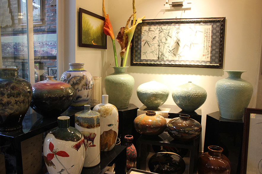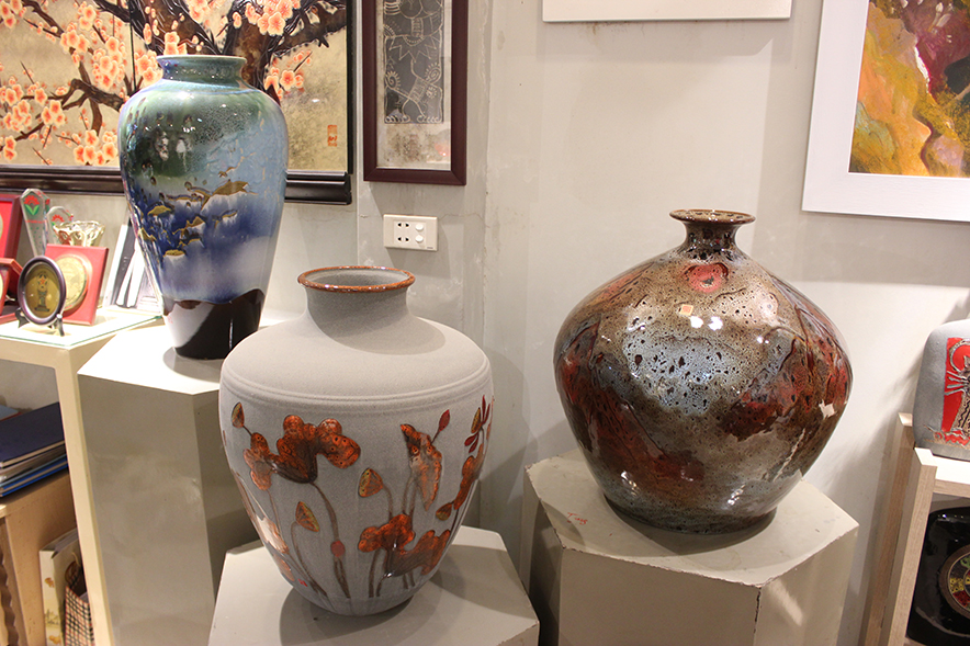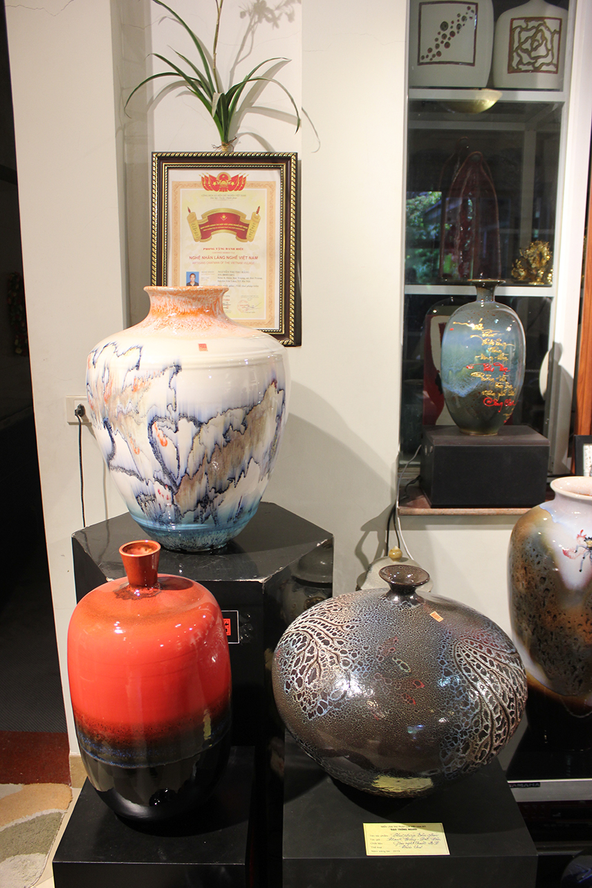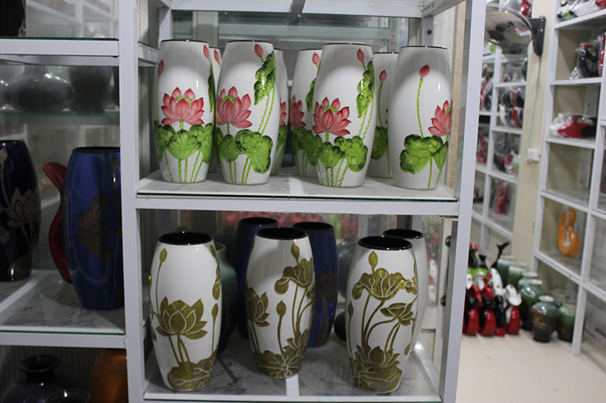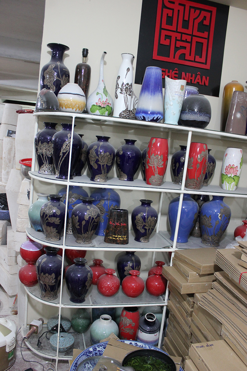 Những sản phẩm này được sản xuất từ đầu đến cuối và trưng bày ngay tại nơi sản xuất, giữa làng cổ Bát Tràng.