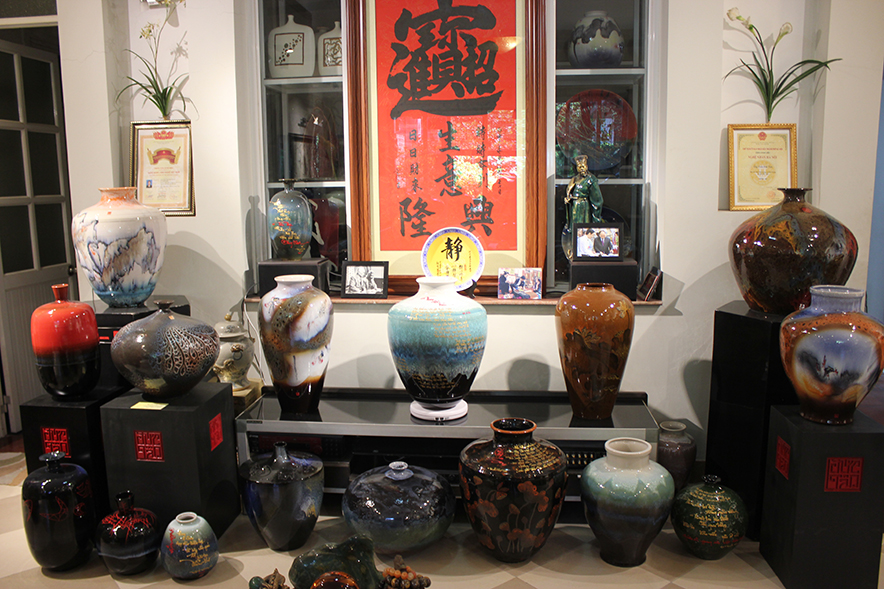 Dòng gốm thư pháp của vợ chồng nghệ sĩ Đức Tân – Thu Hằng có sức hút đặc biệt với những người mê gốm, yêu gốm trong nước và cả du khách quốc tế.
