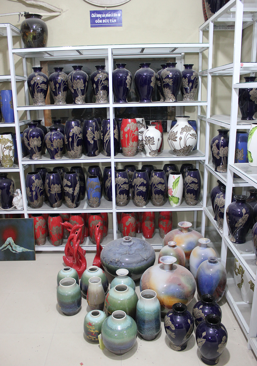 Nhờ sự đang dạng trong thiết kế sản phẩm cả đồ gia dụng và trang trí nội thất, cộng với sự tài hoa trong từng nét chữ, trên mỗi sản phẩm, mà lò gốm Đức Tân giữa làng cổ Bát Tràng quanh năm đỏ lửa, cung cấp sản phẩm đi khắp các các vùng miền.