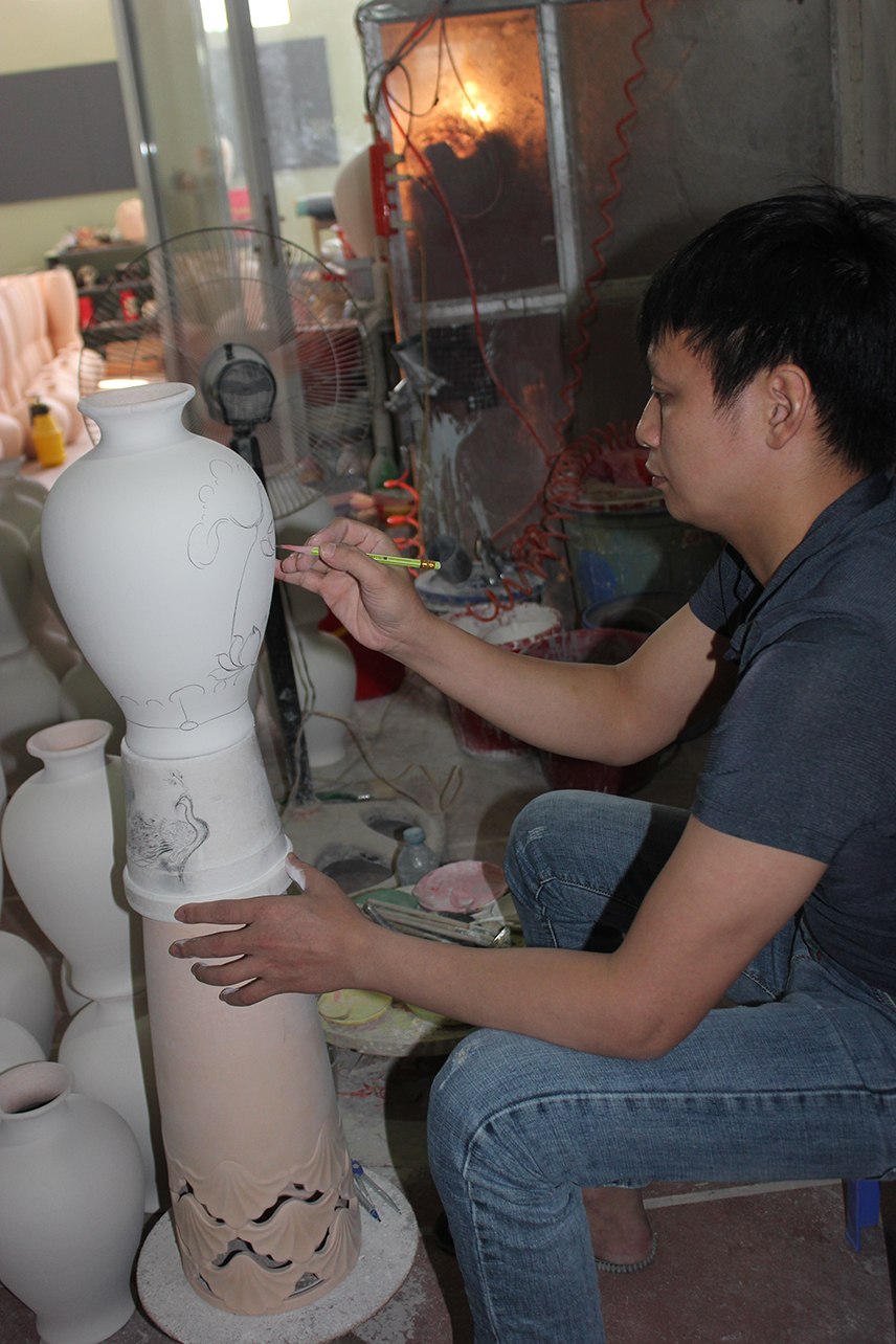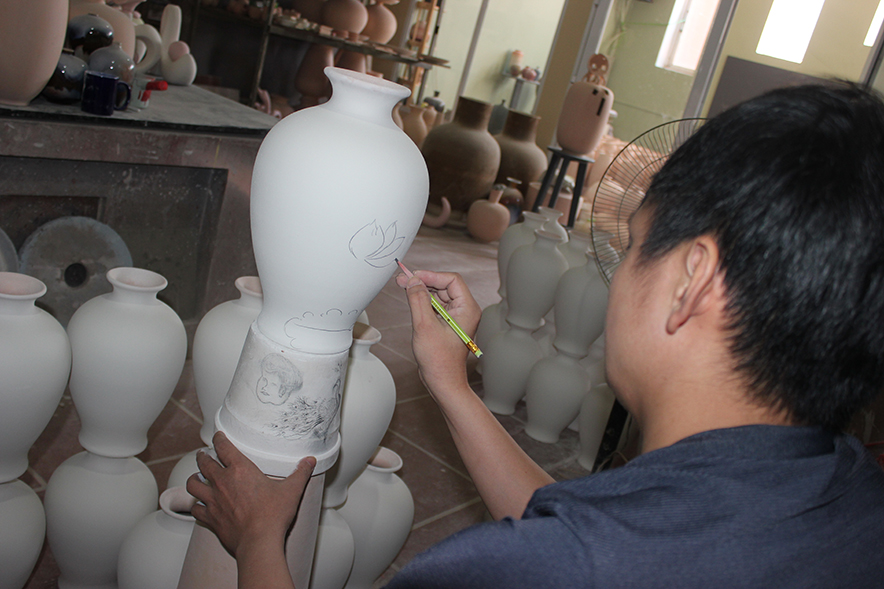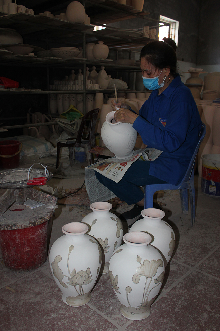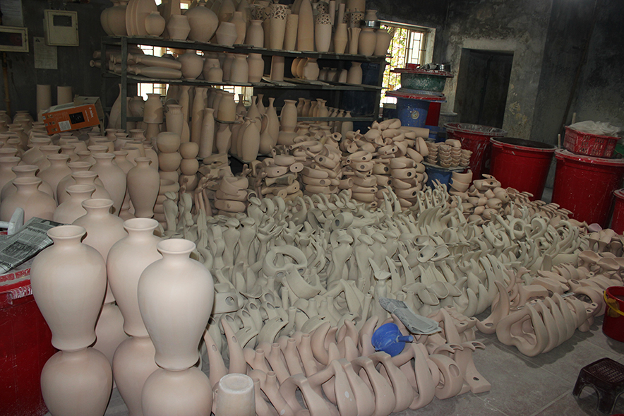 Khi sản phẩm thô định hình, bắt đầu công đoạn của người thợ Bát Tràng
