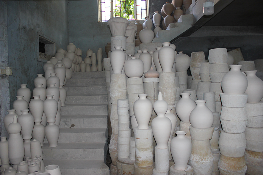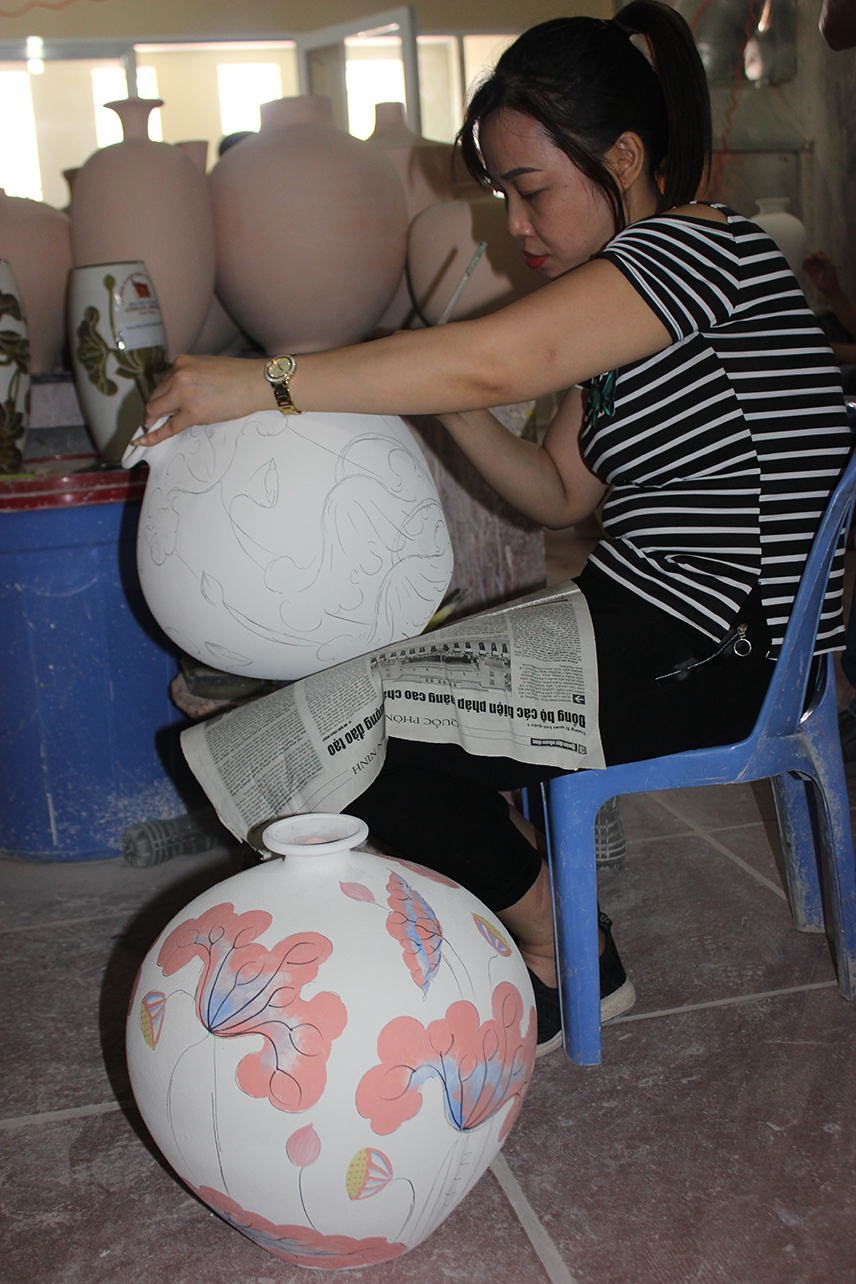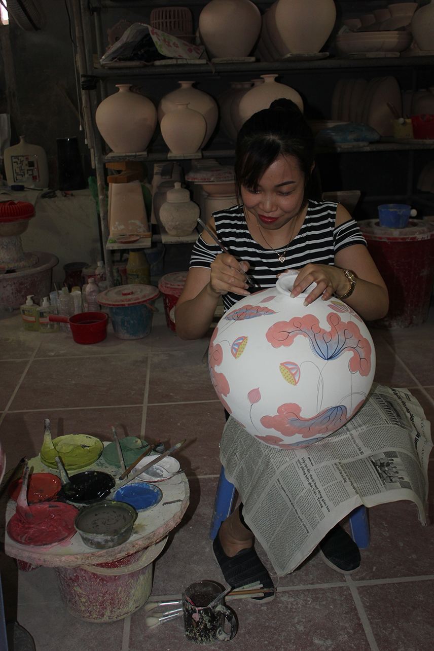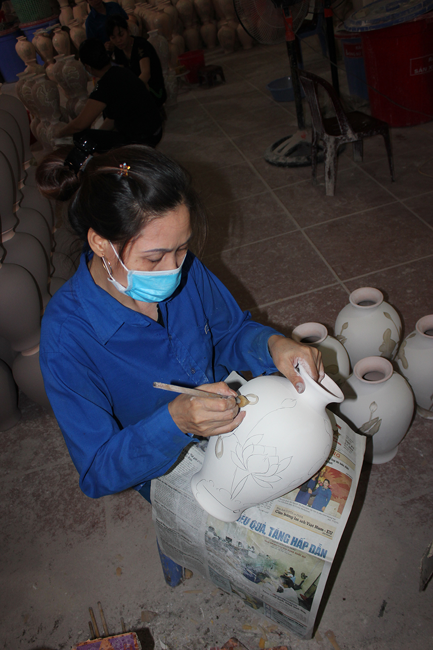 Khi sản phẩm thô định hình, bắt đầu công đoạn của người thợ Bát Tràng