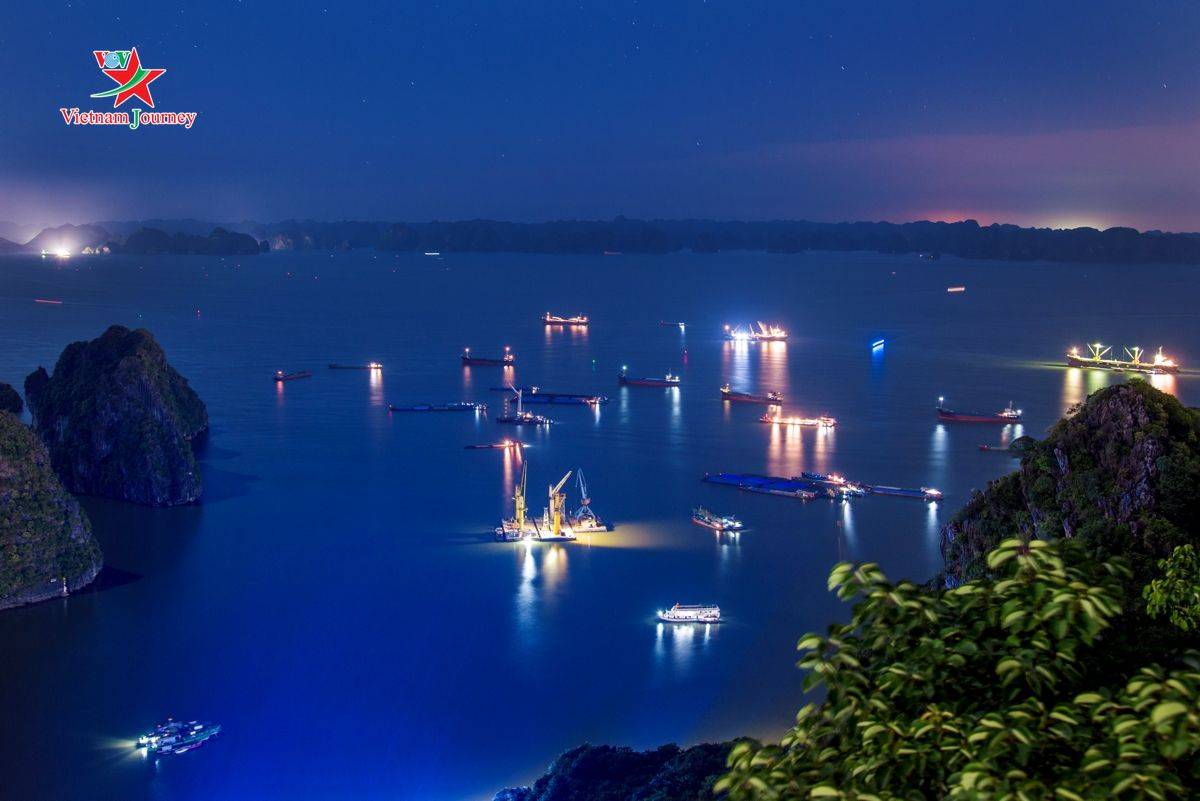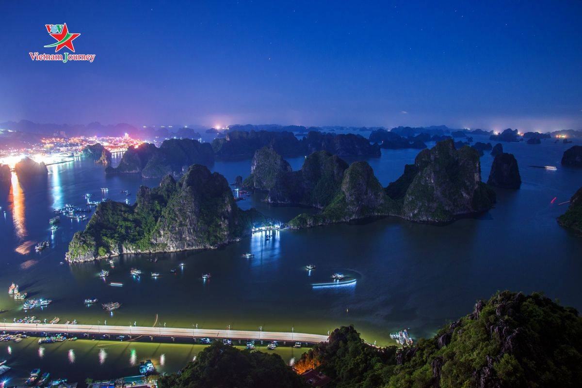 Nhưng Hạ Long đẹp nhất phải nhìn từ trên cao. Góc nhìn từ đỉnh núi Bài Thơ thu trọn thành phố và một góc vịnh di sản về đêm.