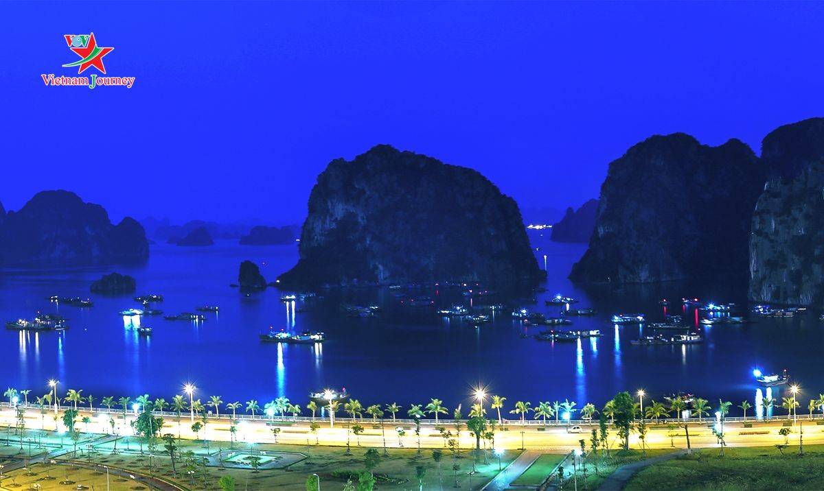 Phố xá Hạ Long lên đèn khi hoàng hôn vừa khuất. Hai bên bờ Bãi Cháy, Hòn Gai được thắp sáng bởi những ánh điện lung linh