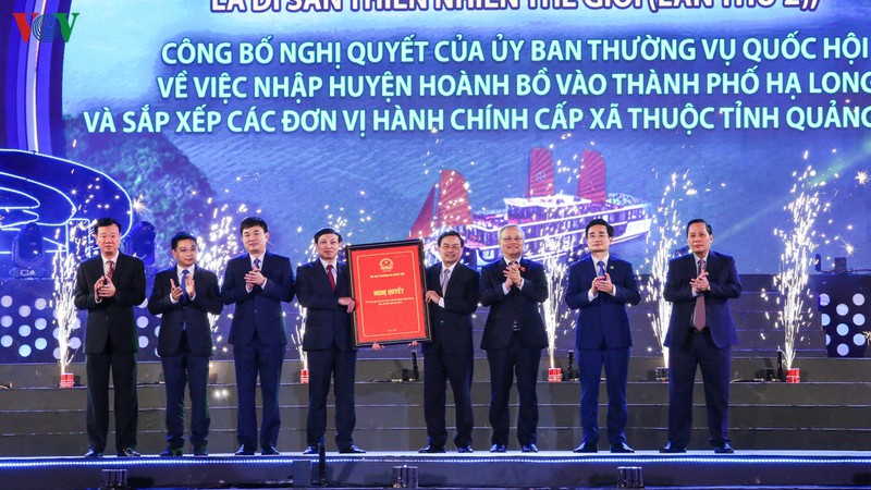 Tối 12/1, tại khu du lịch Bãi Cháy, TP Hạ Long, Quảng Ninh diễn ra Lễ kỷ niệm 20 năm Vịnh Hạ Long lần thứ 2 được UNESCO công nhận là Di sản Thiên nhiên thế giới và Lễ công bố Nghị quyết của Ủy ban Thường vụ Quốc hội về việc sáp nhập huyện Hoành Bồ vào Thành phố Hạ Long và sắp xếp các đơn vị hành chính cấp xã thuộc tỉnh Quảng Ninh. Phó Chủ tịch Quốc hội Uông Chu Lưu và đại diện lãnh đạo nhiều Bộ, ngành Trung ương, địa phương đã đến dự.