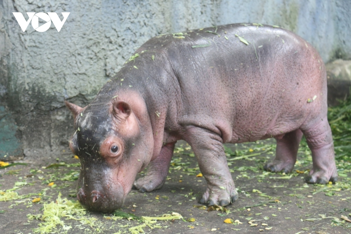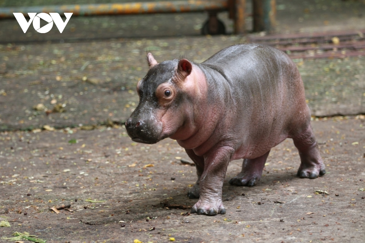 Sau gần 1 tháng tuổi, hà mã con cân nặng khoảng 35kg. |