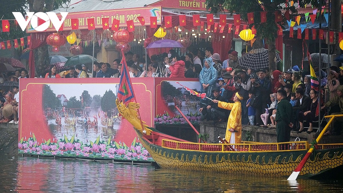 Ngày 10/3 là chính hội, cũng là ngày diễn ra sự kiện tâm điểm của lễ hội, cuộc thi bơi chải trên sông Pheo. |