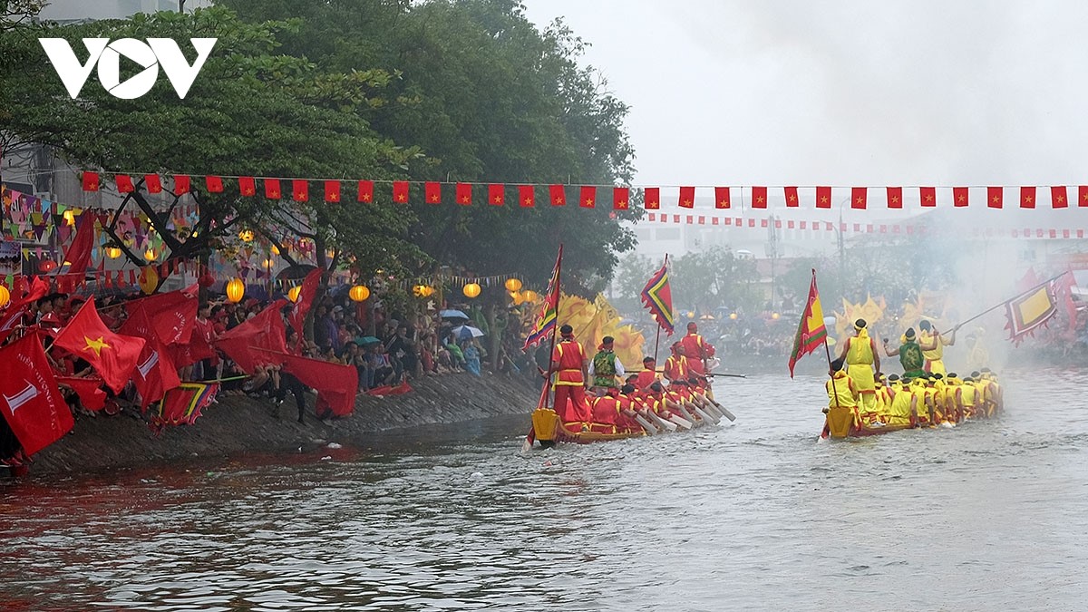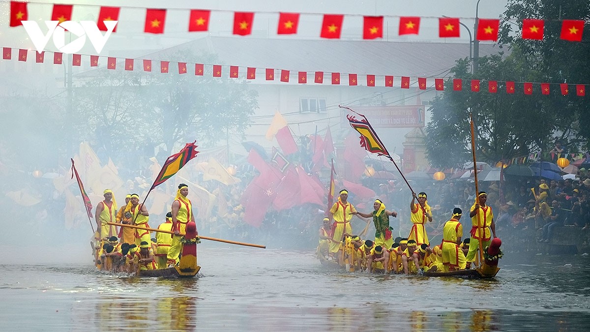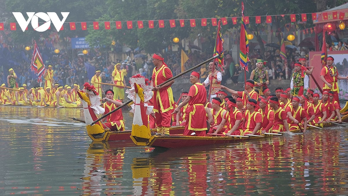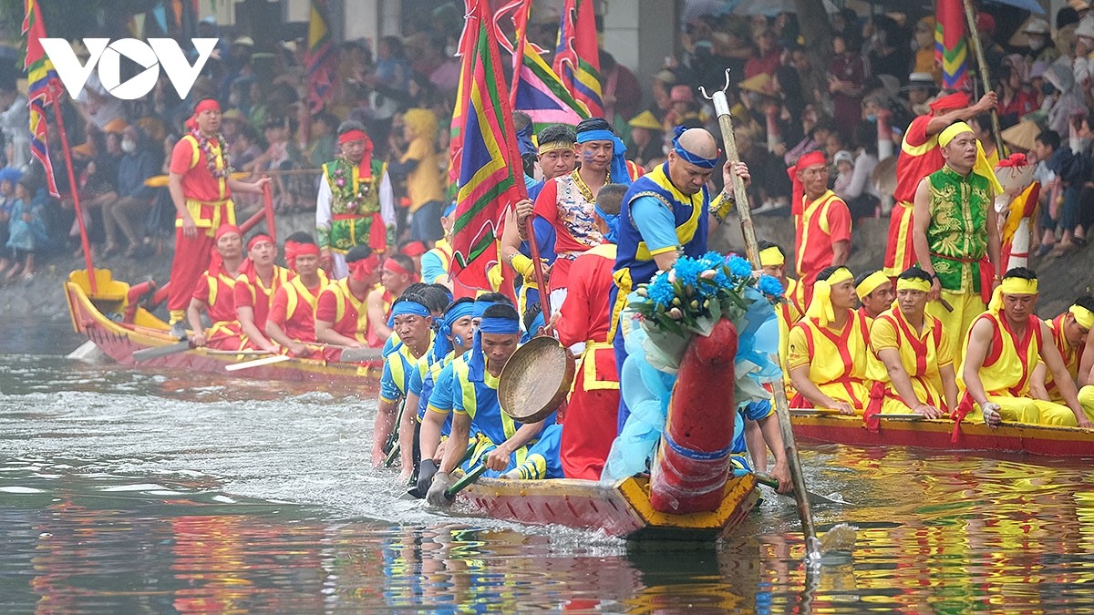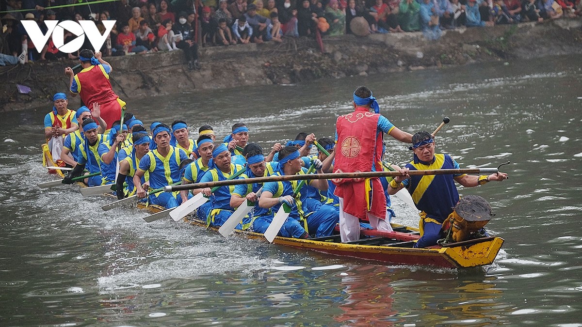 Hội thi bơi chải diễn ra trong hai ngày 10 và 11/3 (âm lịch) với 6 vòng thi chính. |
