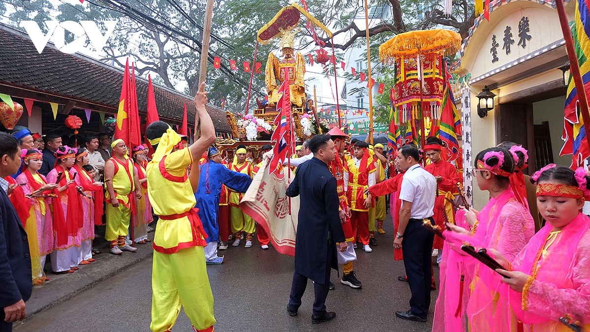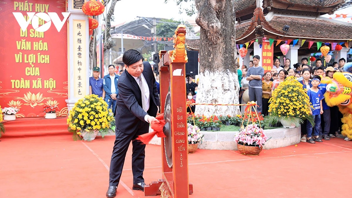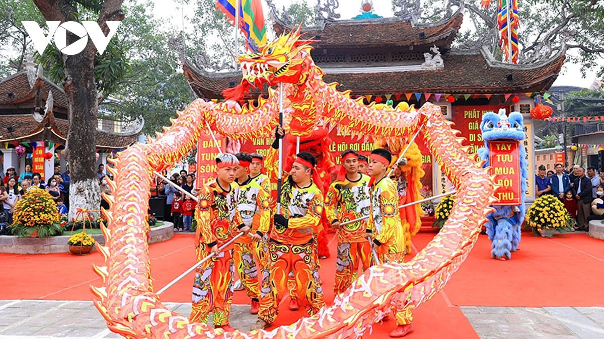 Phần hội có các trò chơi dân gian đặc sắc như: Múa lân sư rồng, hội thi cờ người, bịt mắt bắt dê, cắm hoa nghệ thuật... |