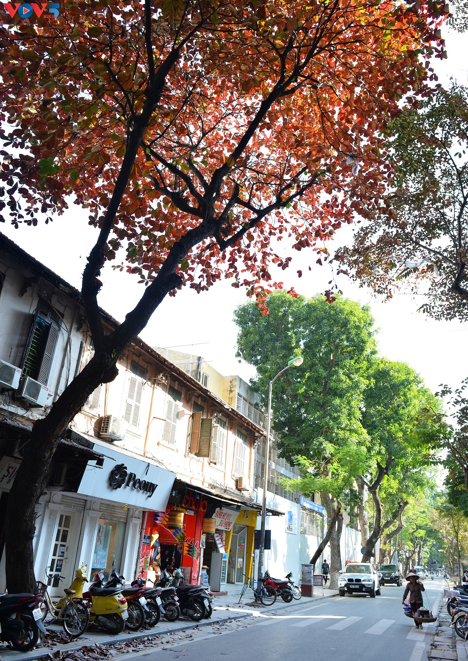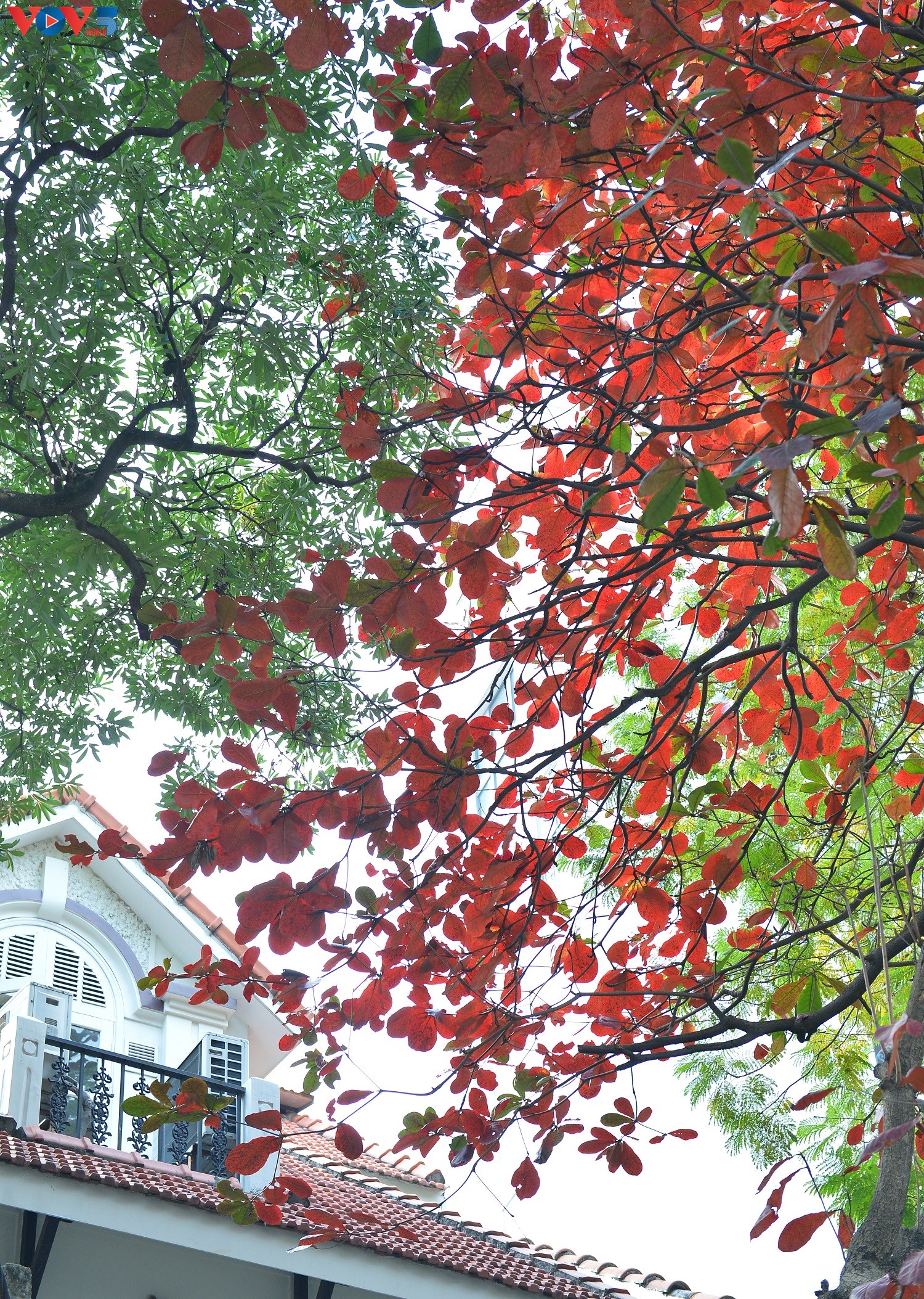 Tán bàng đỏ, khiến bất cứ ai đi qua cũng bất chợt dừng lại tận hưởng một trong những khoảnh khắc đẹp nhất trong năm của Hà Nội. Mỗi cây bàng bỗng trở nên rực rỡ, sáng bừng giữa khung cảnh xám lạnh, mù mịt của mùa đông Hà Nội.