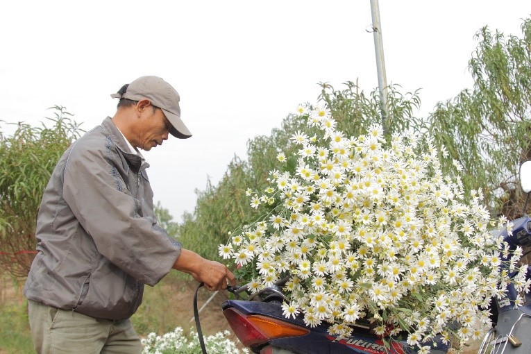 | Hoa cúc họa mi chuẩn bị đem vào thành phố bán |