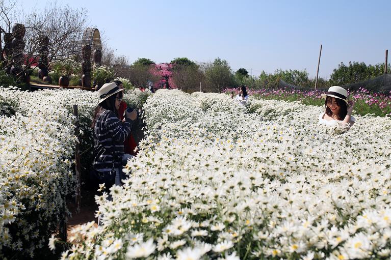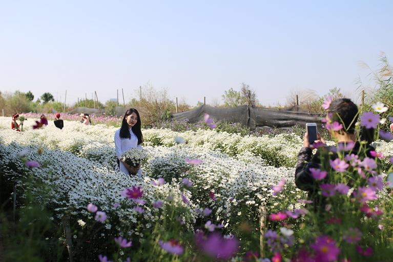 | Đến vườn cúc họa mi chụp ảnh là niềm vui dịp cuối tuần của nhiều bạn trẻ |