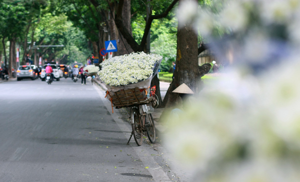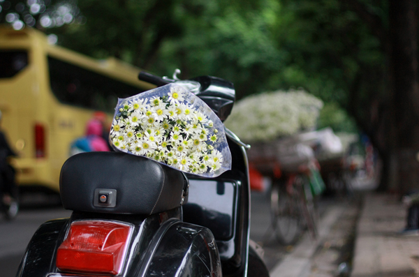 | Đi đến góc phố nào cũng dễ dàng nhìn thấy những xe chở cúc họa mi |
