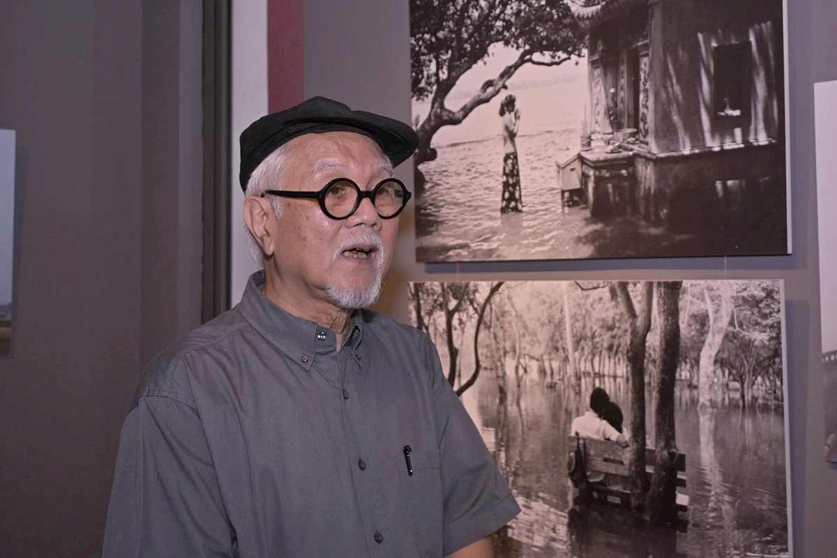 Nhiếp ảnh gia Nguyễn Hữu Bảo chia sẻ: “Những bức ảnh của tôi không phải là Hà Nội với ánh sáng rực rỡ, mà là một Hà Nội không trang điểm, chứa đựng trong đó đầy đủ ái, ố, hỉ, nộ. Mỗi bức ảnh đều mang trong mình một cảm xúc riêng, không hoàn toàn theo chủ nghĩa duy mỹ. Trong đó, có tôi, có tình cảm, có cái nhìn về cuộc sống của chính mình”. (Trong ảnh: Nghệ sĩ nhiếp ảnh Nguyễn Hữu Bảo và các tác phẩm của ông. Ảnh: Thúy An/hanoimoi.vn) |