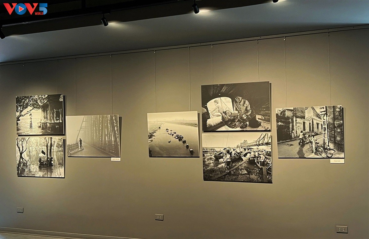 Không gian triển lãm được sắp đặt như một “hẻm phố ký ức” – nơi những bức ảnh trắng đen xen lẫn màu sắc hiện đại, tạo thành hành trình khám phá Hà Nội qua từng thời khắc. |