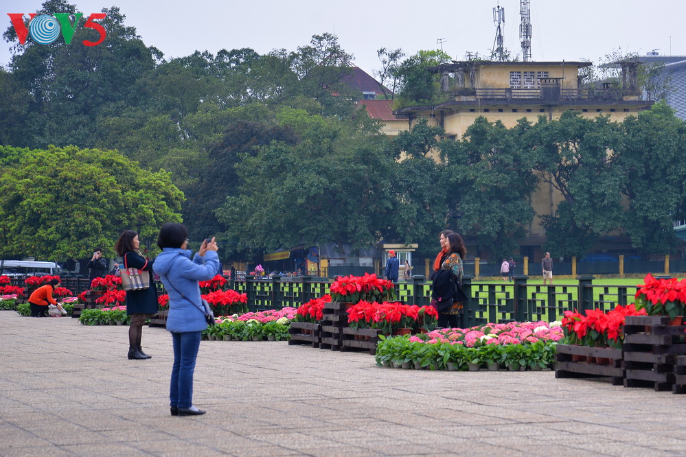 | Nhiều chậu hoa, cây cảnh khoe sắc tại khu vực Quảng trường Ba Đình (Hà Nội). |