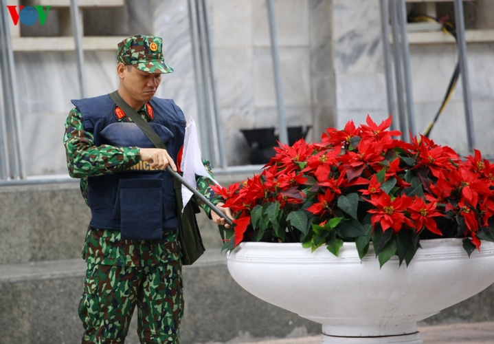 | Tại các địa điểm dự kiến đón đoàn, tổ chức hội nghị, lực lượng công binh Việt Nam kiểm tra kỹ càng từng chậu hoa, cây cảnh.(Ảnh: Trọng Phú) |