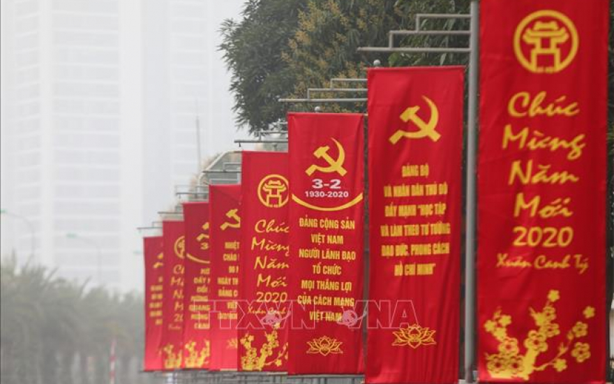 Pano, khẩu hiệu được trang trí chào mừng kỷ niệm 90 năm Ngày thành lập Đảng Cộng sản Việt Nam. Ảnh: Minh Quyết/TTXVN