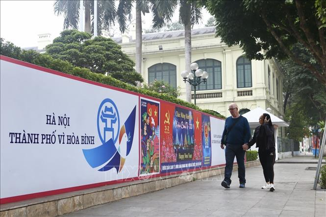 Cờ, hoa được trang trí chào mừng kỷ niệm 90 năm Ngày thành lập Đảng Cộng sản Việt Nam. Ảnh: Minh Quyết/TTXVN