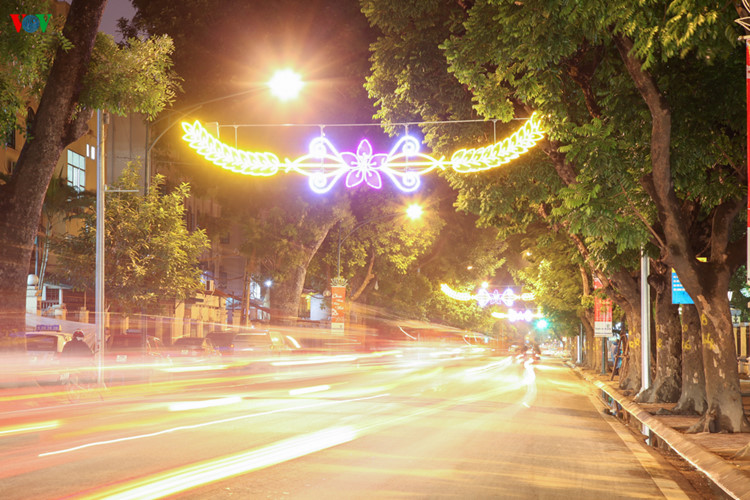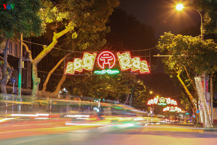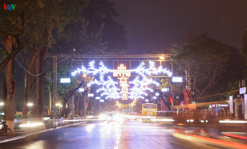 | Không chỉ riêng Hồ Gươm, các tuyến phố trung tâm Hà Nội cũng được trang hoàng lộng lẫy. |