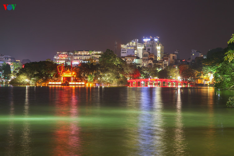 | Nhắc đến Hà Nội, không thể không nhắc đến hồ Gươm, những ngày này hồ Gươm như rực rỡ hơn với hàng ngàn chiếc đèn thắp sáng. Tháp Rùa lung linh giữa lòng hồ Gươm. |