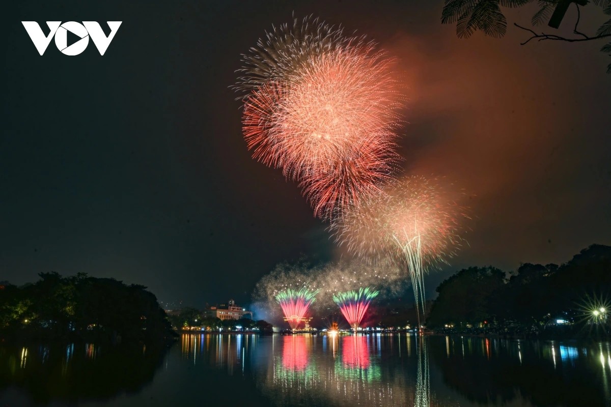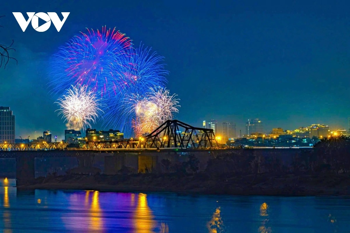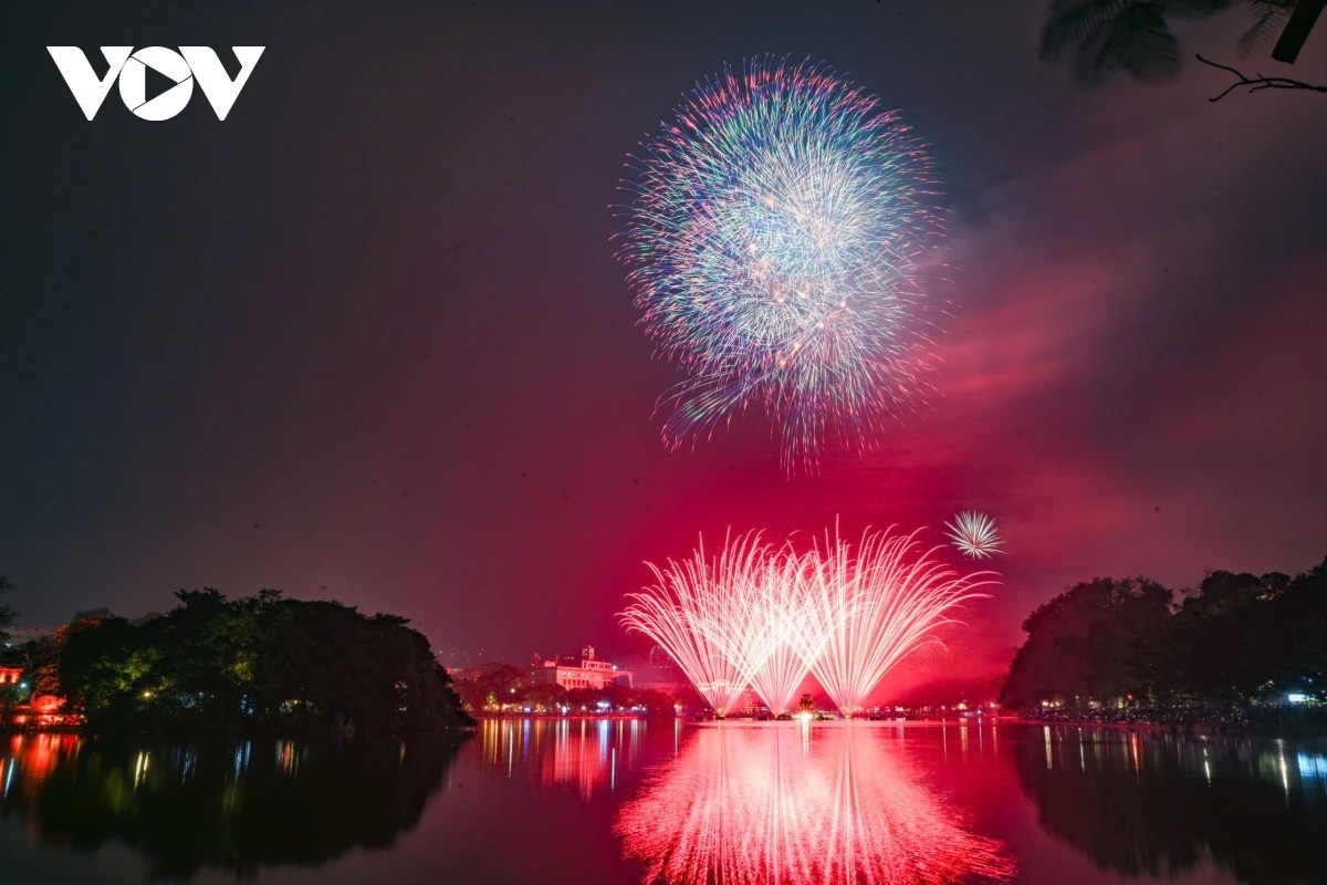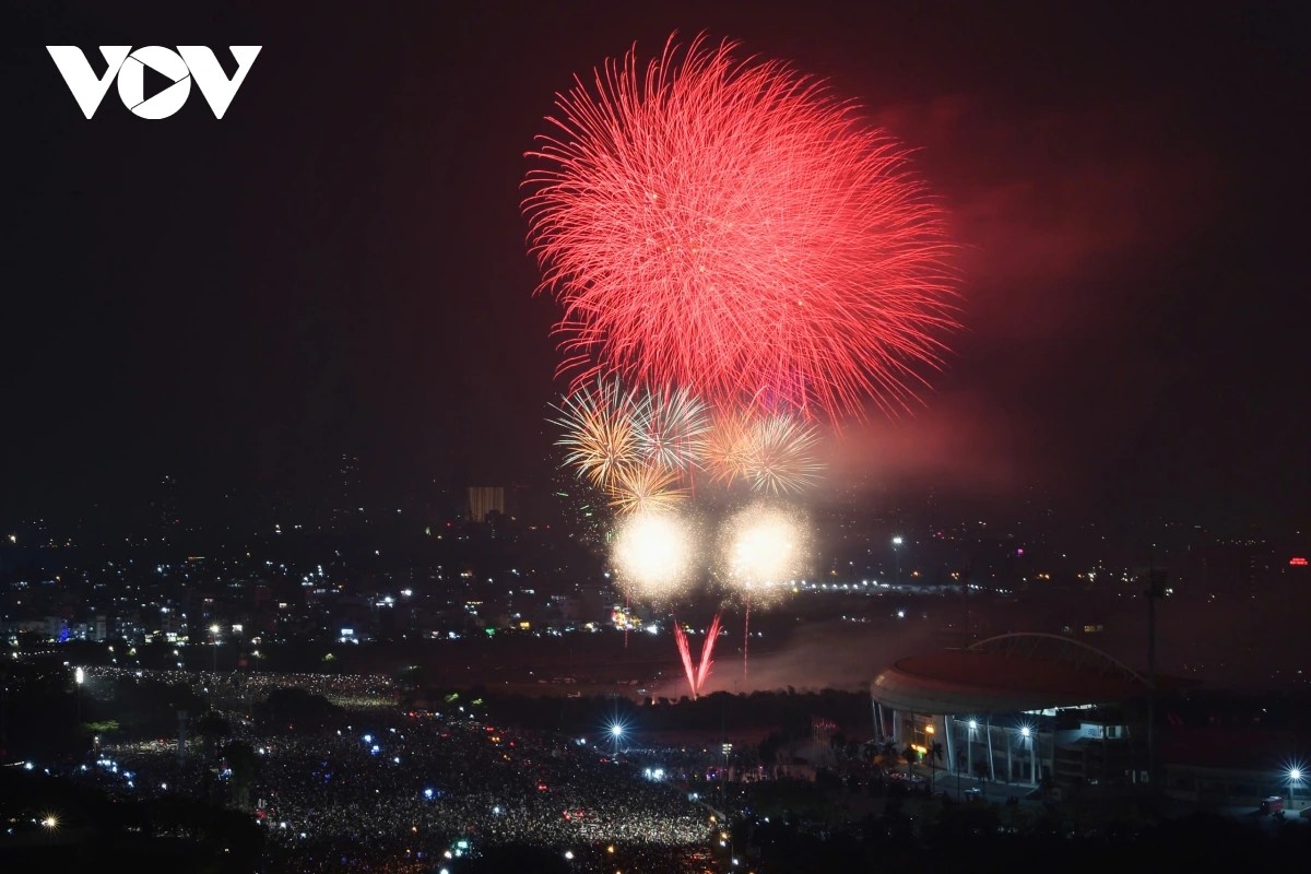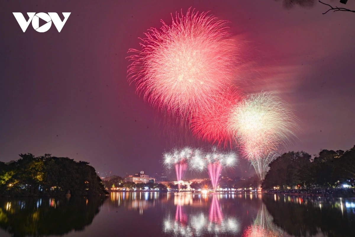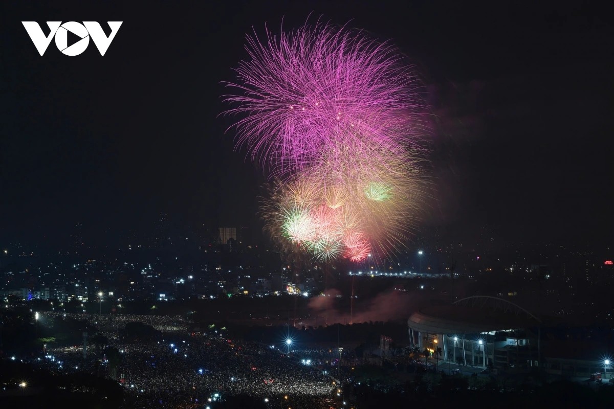 (VOV5) - Đúng thời khắc chuyển sang năm 2026, bầu trời Hà Nội bừng sáng với màn pháo hoa kéo dài 15 phút từ 23h45 ngày 31/12/2025 đến 0h ngày 1/1/2026 tại 5 điểm, 6 trận địa. Hàng vạn người dân, du khách reo hò, ghi lại khoảnh khắc giao thừa rực rỡ.