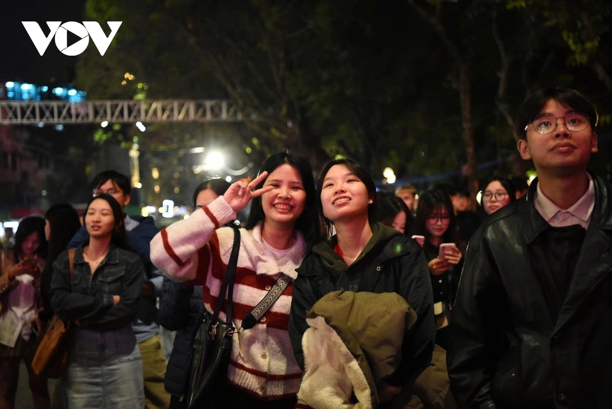 Không khí đêm giao thừa vì thế càng thêm đặc biệt khi những tiếng reo hò vang lên, nhiều người tranh thủ ghi lại khoảnh khắc đáng nhớ, gửi lời chúc nhau một năm mới bình an, nhiều khởi sắc.