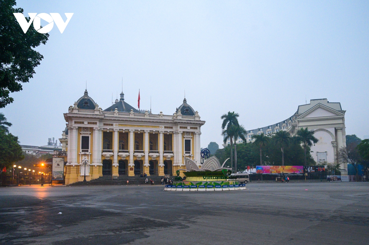 Không xe cộ nườm nượp, Nhà Hát Lớn trong ngày đầu năm mới bỗng trở lên tĩnh lặng lạ thường. |