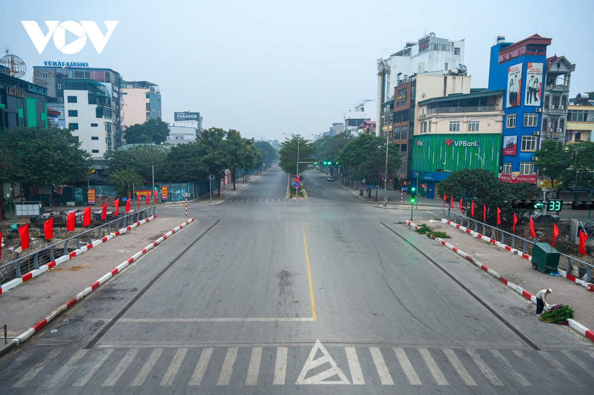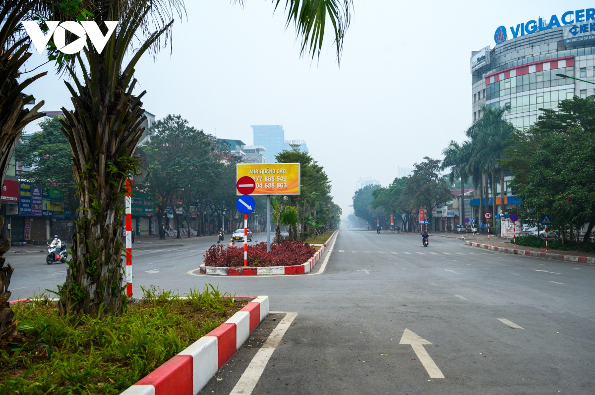 Đường Hoàng Quốc Việt vắng vẻ tới lạ lẫm. |
