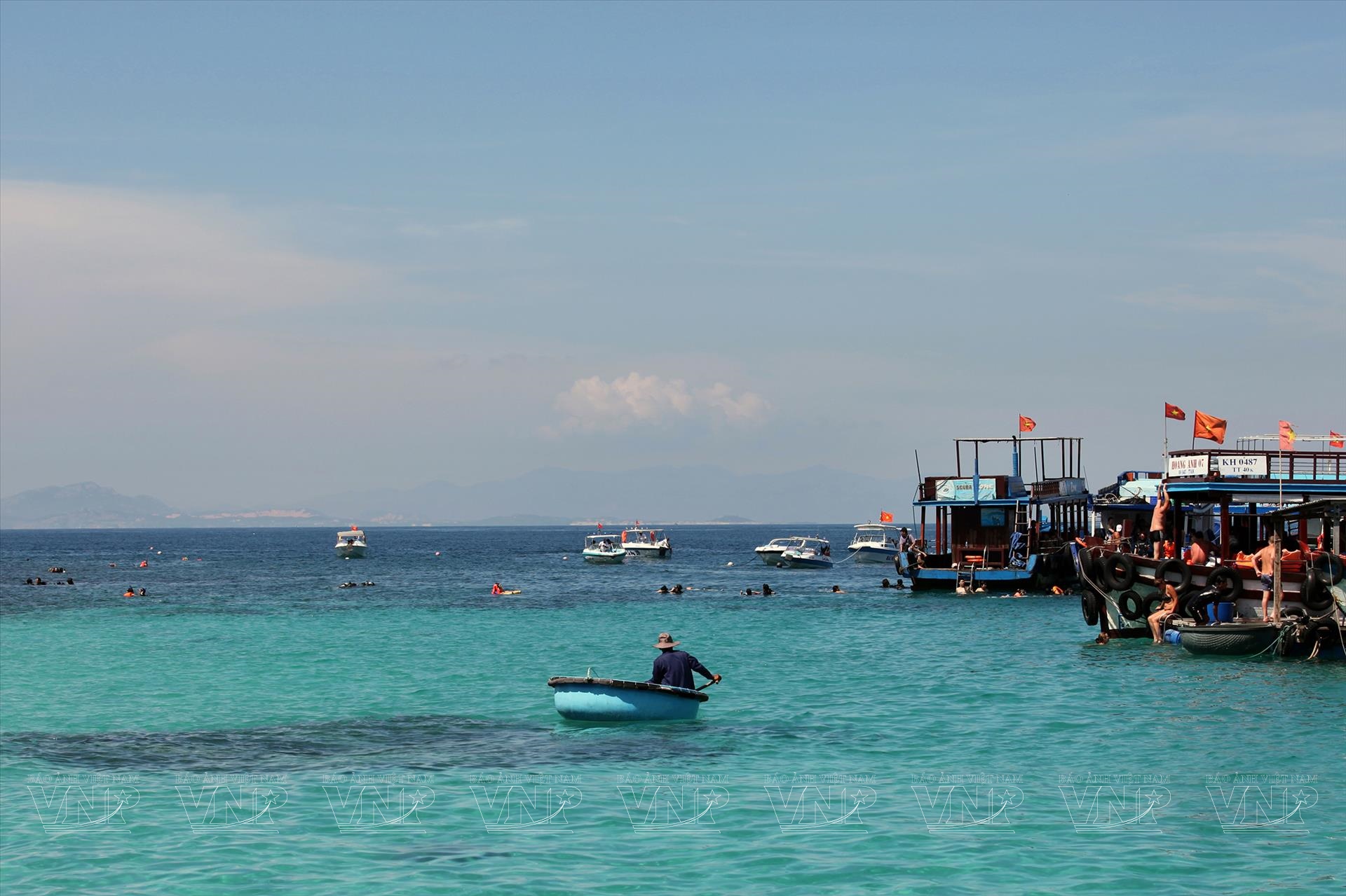 Du khách tham gia tắm biển ở khu vực Hòn Tằm. Ảnh: VNP