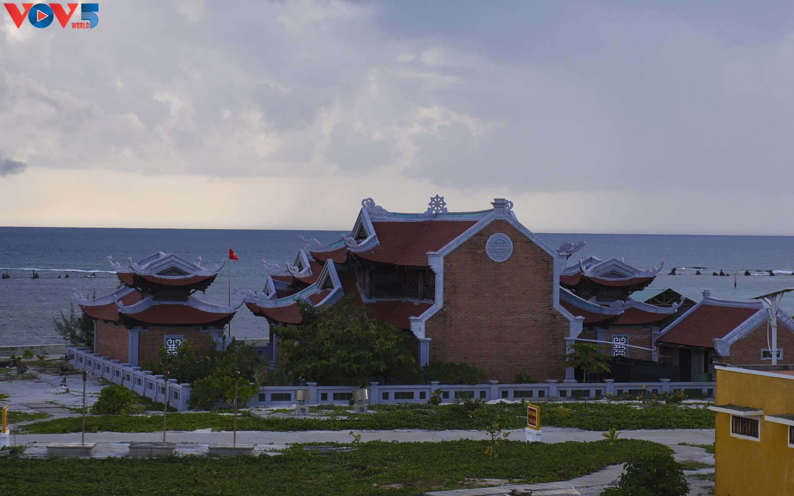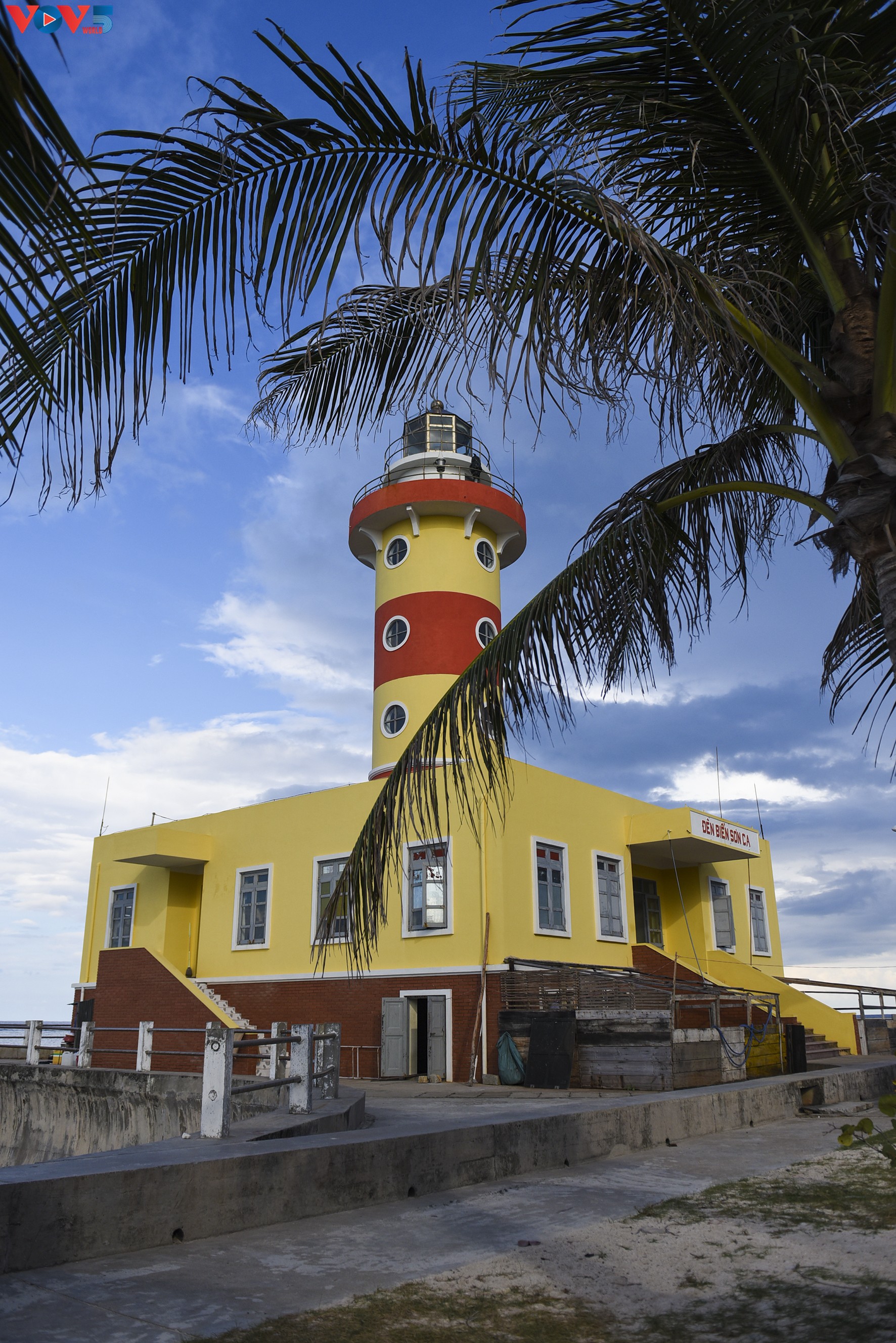 Hải đăng có vị trí phía sau ngôi chùa Linh Sơn trên đảo Sơn Ca. |