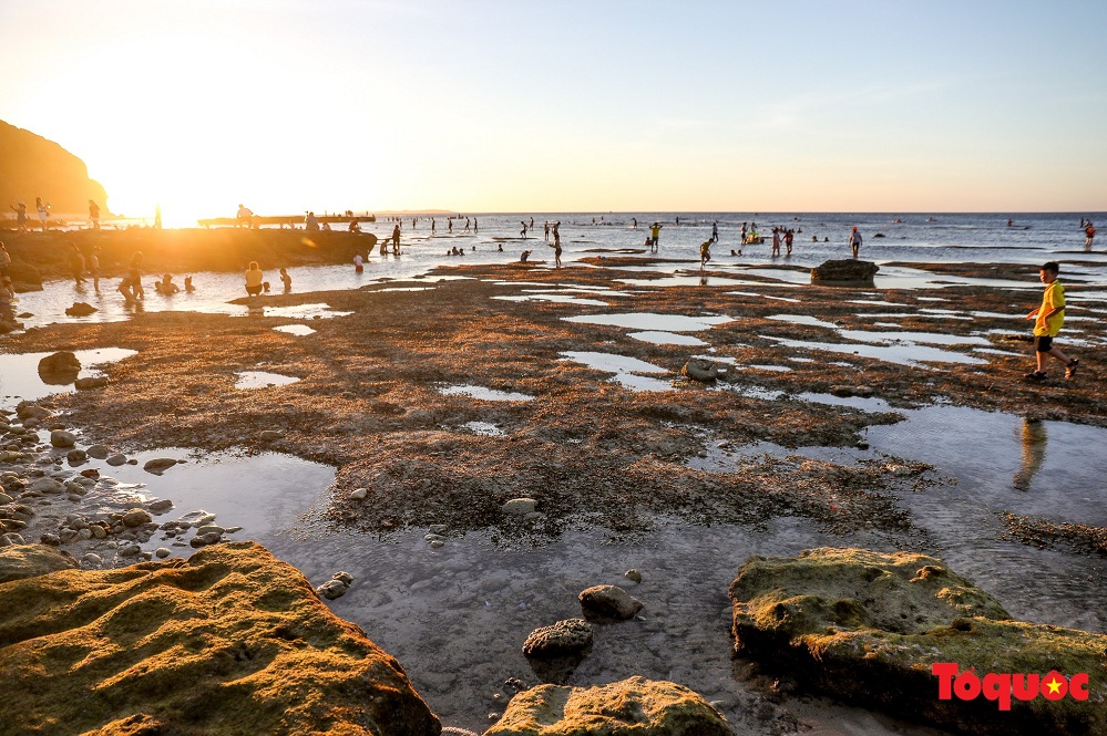 Vào khoảng 4 – 5h chiều, nước thủy triều rút, con đường mòn lộ diện giữa những lớp đá gồ ghề. Ảnh: toquoc.vn