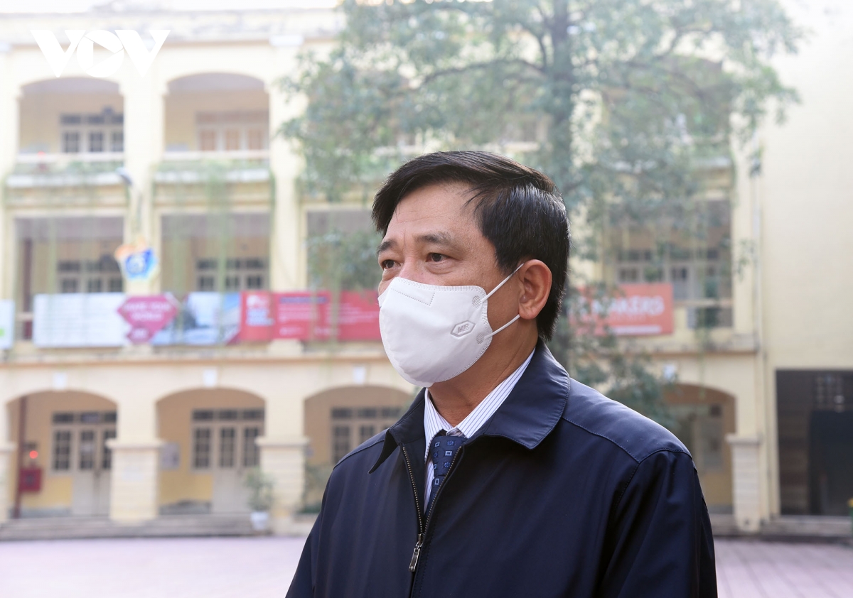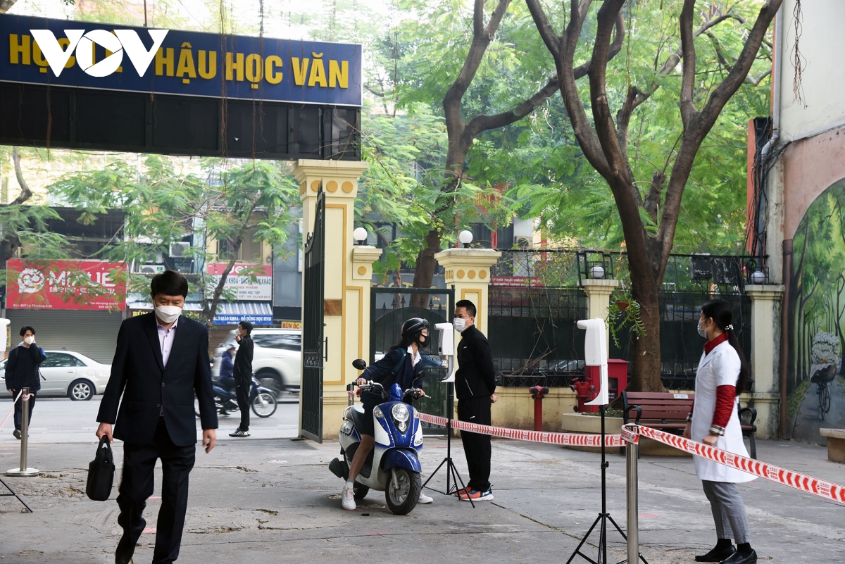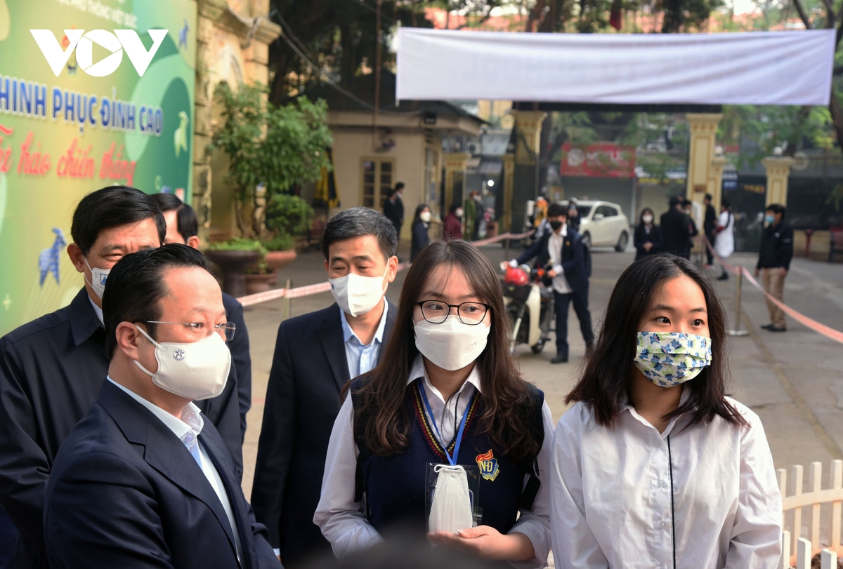 Giám đốc Sở GD-ĐT Hà Nội cùng đoàn kiểm tra của Sở GD-ĐT có mặt tại trường THPT Việt Đức từ sớm để kiểm tra công tác đón học sinh trở lại trường cũng như động viên, lắng nghe tâm tư nguyện vọng của học sinh khi đi học trực tiếp. |