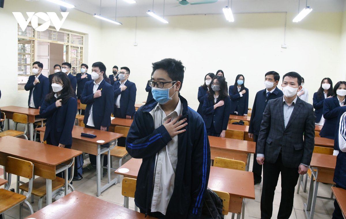 Sáng nay (6/12), khoảng 50% học sinh lớp 12 tại các xã, phường, thị trấn của 30 quận, huyện, thị xã trên toàn thành phố Hà Nội chính thức trở lại trường học trực tiếp sau nhiều tháng học online phòng chống dịch COVID-19.
