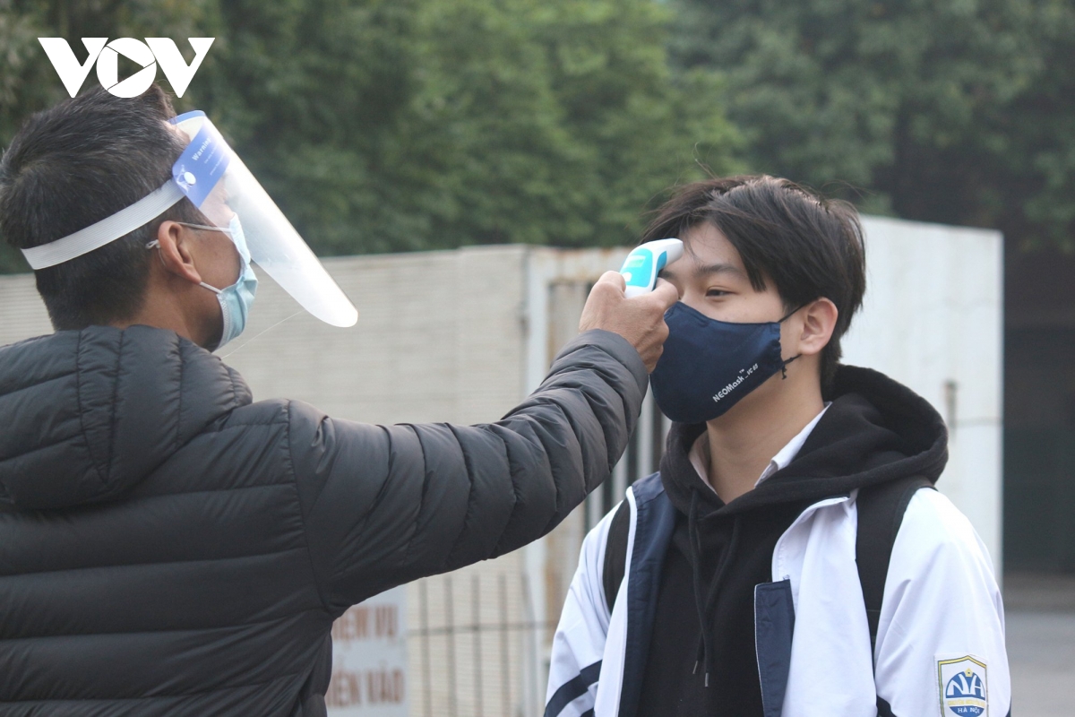 Còn tại điểm trường THPT Nguyễn Huệ, Hà Đông, trong sáng nay, có khoảng 250 học sinh đến trường. |