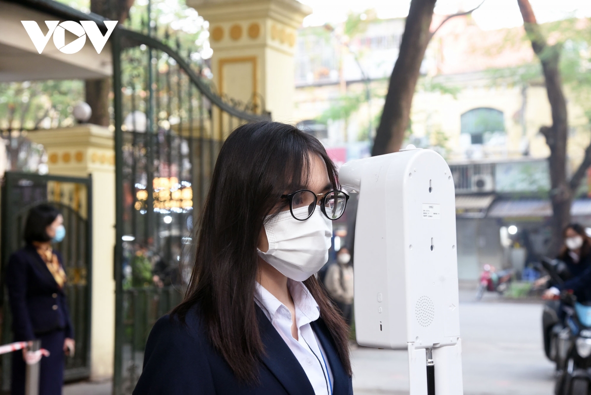 Lê Bích Hường, học sinh lớp 12D2, Trường THPT Việt Đức chia sẻ cảm xúc ngày đầu đến trường: "Với học sinh cuối cấp, được đến trường học trực tiếp sẽ thuận lợi hơn cho chúng em rất nhiều trong việc tiếp thu kiến thức, ôn tập chuẩn bị cho kỳ thi tốt nghiệp THPT và xét tuyển đại học. Đến trường học, chúng em cũng có thêm nhiều thời gian ở bên bạn bè, thầy cô, có thêm những kỷ niệm đẹp ở năm học cuối cùng bậc THPT. Tuy nhiên, hiện nay dịch bệnh tại Hà Nội vẫn đang diễn biến phức tạp, nên em cũng rất lo lắng, em sẽ luôn tuân thủ các quy định về phòng chống dịch để đảm bảo an toàn cho bản thân và những người xung quanh. |