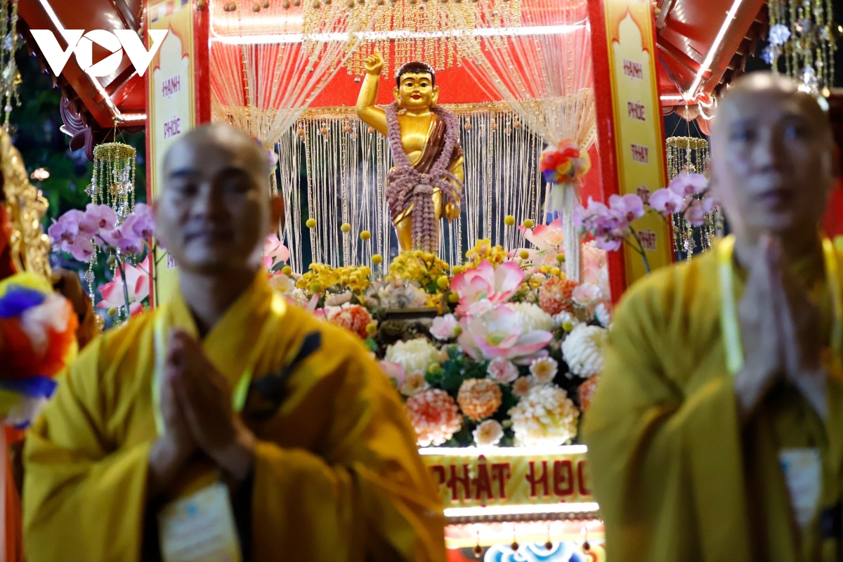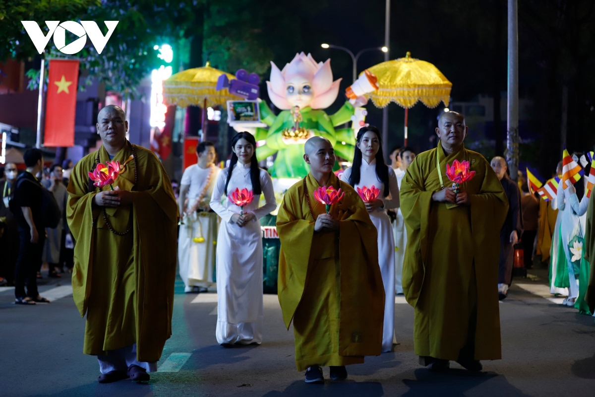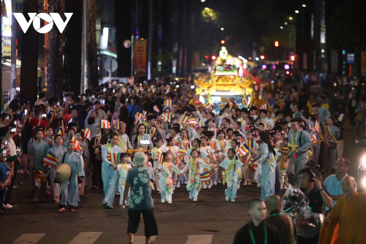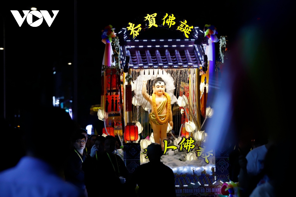 Đúng 20h, Lễ rước kiệu Phật được cử hành trang trọng, với hàng chục kiệu Phật của các ban ngành Giáo hội Phật giáo Việt Nam TP. Hồ Chí Minh cùng các cơ sở thờ tự thuộc các hệ phái khác nhau như: Phật giáo Bắc tông, Phật giáo Nam tông, Phật giáo Khất sĩ,... |