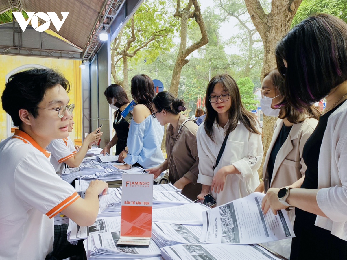 Các gian hàng bán tour du lịch kích cầu là những khu vực sôi động nhất tại Lễ hội Du lịch Hà Nội năm 2023. |