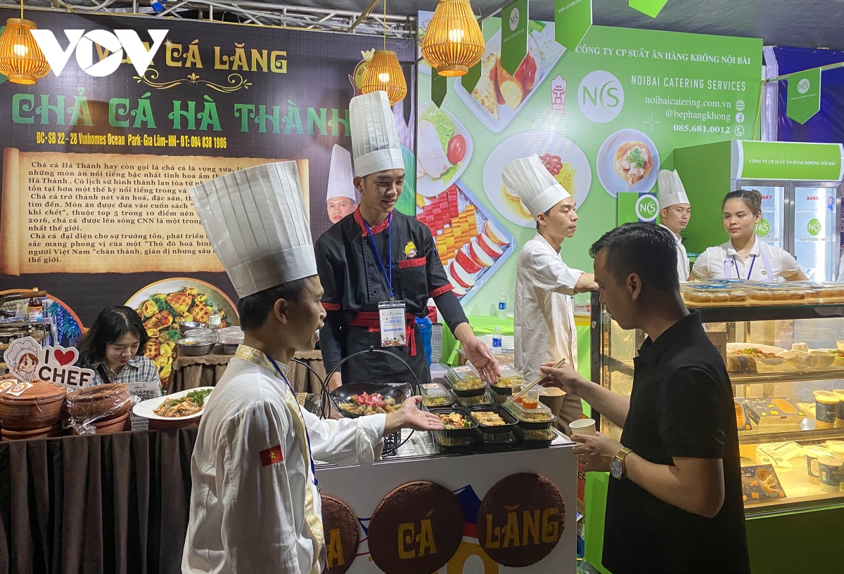 Cách không xa các gian hàng du lịch là khu giới thiệu ẩm thực, giới thiệu làng nghề, làng cổ Hà Nội và gian hàng của Liên Chi hội Đầu bếp Việt Nam. Du khách được thưởng thức, trải nghiệm ẩm thực hấp dẫn, mua sắm các sản phẩm làng nghề độc đáo, đậm chất văn hóa tại khu vực nhà Bát Giác và phố Lê Thạch. |