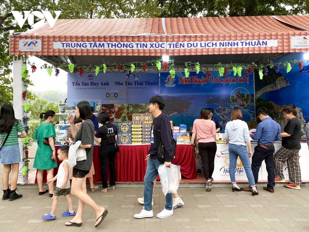 Gian hàng của Trung tâm Thông tin Xúc tiến du lịch Ninh Thuận thu hút khách tham quan, tìm hiểu sản phẩm. |